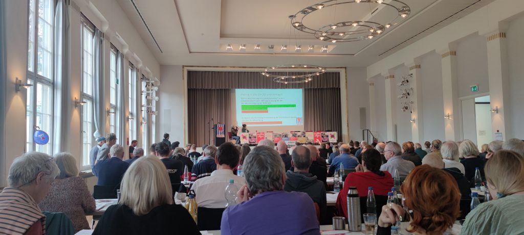 Die Inputs während des Kongresses waren informativ und wären eine sinnvolle Grundlage für eine weitergehende Diskussion gewesen. Dies war für den Bundeskongress aber nicht vorgesehen. Daher wäre es sinnvoller gewesen, sie zu streichen und in Schriftform den Delegierten im Vorfeld zur Verfügung zu stellen, um sie als Grundlage für einen Austausch nutzen zu können. Auf diesem Bundeskongress blieben die informativen Inhalte daher leider ungenutzt und der drängende Themenkomplex „Friedenspolitische Anträge“ (u. a. mit den Themen Friedensinitiativen, Militarisierung, Kriegstüchtigkeit, Kriege, Atomwaffen) entfiel gänzlich.